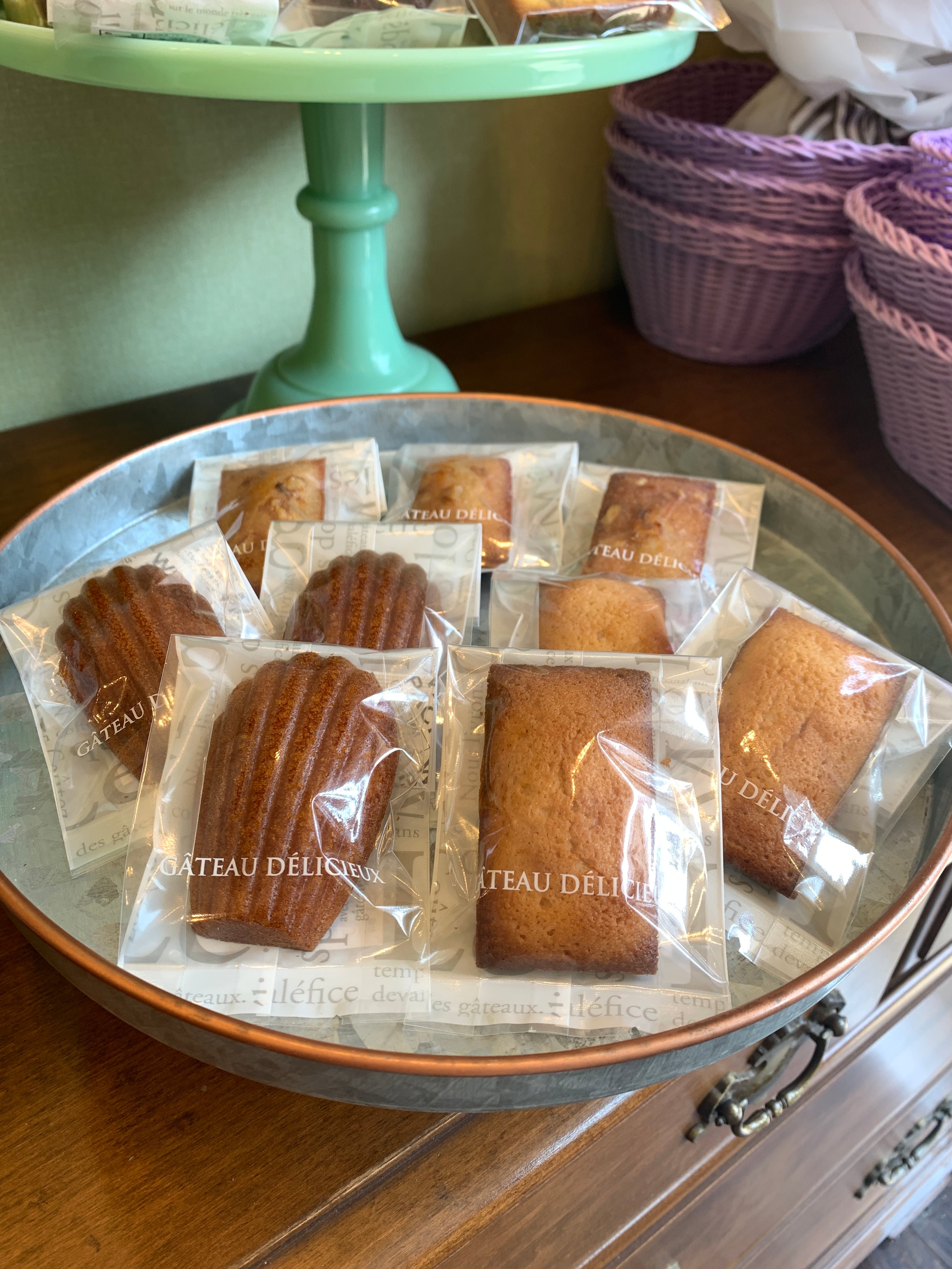 マドレーヌ・・・卵(国産)、砂糖、発酵バター、バター、小麦粉、アーモンド、はちみつ、トリモリン、レモン表皮、塩、バニラビーンズ/膨張剤
